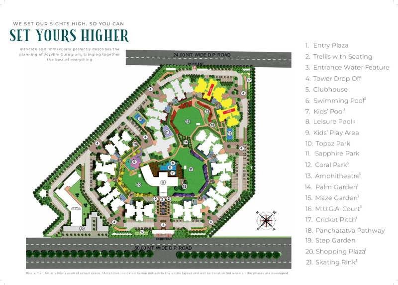 Indulge in a plethora of amenities including clubhouse, swimming pool, kids' play area, amphitheatre, skating rink, and more. With lush green parks and sports facilities, Joyville Gurgaon ensures a holistic lifestyle for its residents.